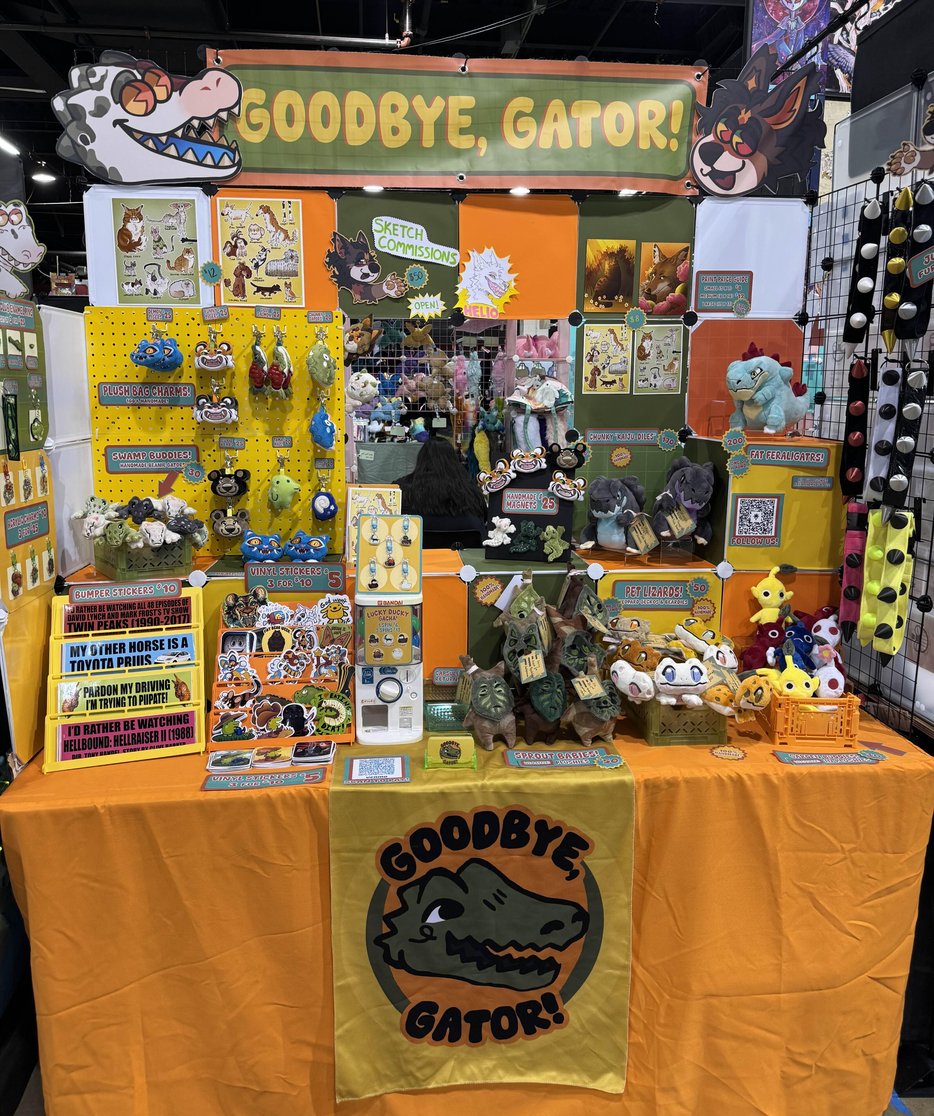 We are Goodbye, Gator! A small, queer owned-and-operated art and design business specializing in handmade goods! We love to create stickers, lifestyle goods, plush toys, and accessories for costumes and fursuits, letting our own niche interests guide our hands.We’re a two person operation, made up of Mason (day-to-day operations, sewing) and Alec (art and design), based on the west coast. Established in 2024, Goodbye, Gator! is bright eyed and bushy tailed, going for a more experimental and trial-and-error based method development -- this means a lot of our stuff is either fully one-of-a-kind, or produced in very small and limited batches right here in our home by our own hands!This is our portfolio website where you can find our work, as well as our commission information and contact info for partnerships and convention opportunities.